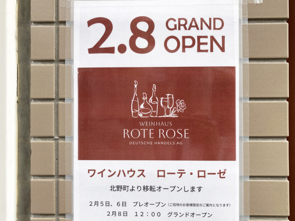 トアロードに、ワインハウス『ROTE ROSE(ローテ・ローゼ)』ができてる。北野から移転