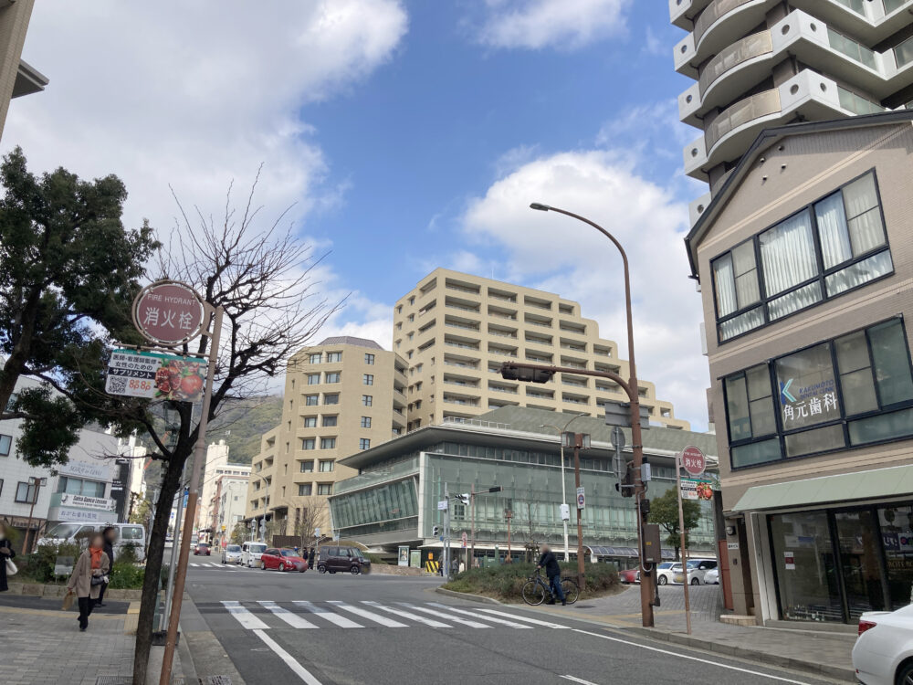 山側を向くと「NHK神戸放送局」や、⾷の複合施設「神戸北野ノスタ」があります。