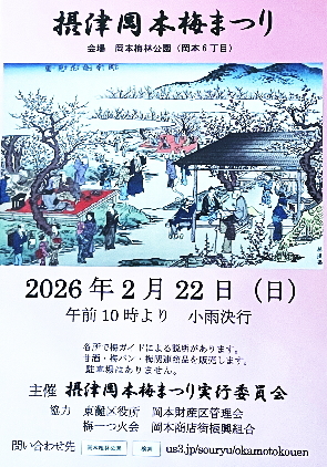 2月22日(日)10:00~15:00は、毎年恒例の「摂津岡本梅まつり」も開催予定。