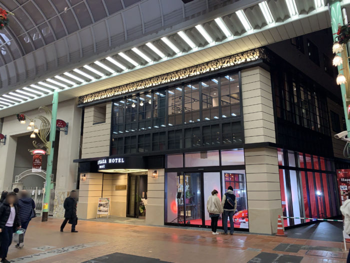南京町の少し西あたりの元町商店街に『神戸プラザホテルウエスト』ってビジネスホテルができてました。オープン記念でしょうか。なぜかフェラーリが展示されています。
