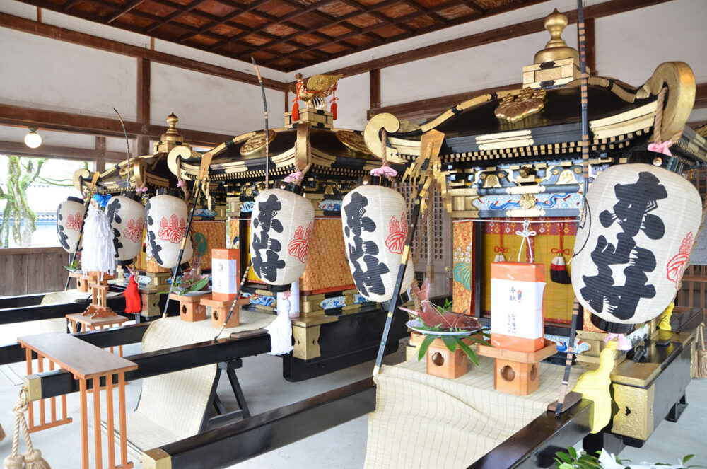 祭り本番の15日の「本宮」では、祭礼の主要行事である御旅山(おたびやま)への神輿神事渡御(みこししんじとぎょ)を行います。神輿は日暮れ時に松原八幡神社へ戻り、屋台はそれぞれの村に帰って祭り行事の幕を閉じるんだとか。