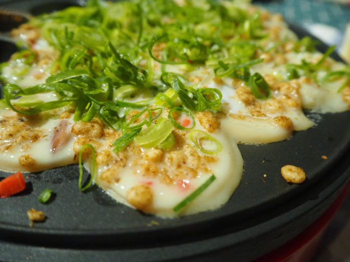 元々オーナーが明石焼きをやっていた人ということで、玉子をたっぷり使ったダシのきいた生地。注ぐだけでも滑らかだなぁと感じる生地は、家庭で再現できる自信はありません。。。