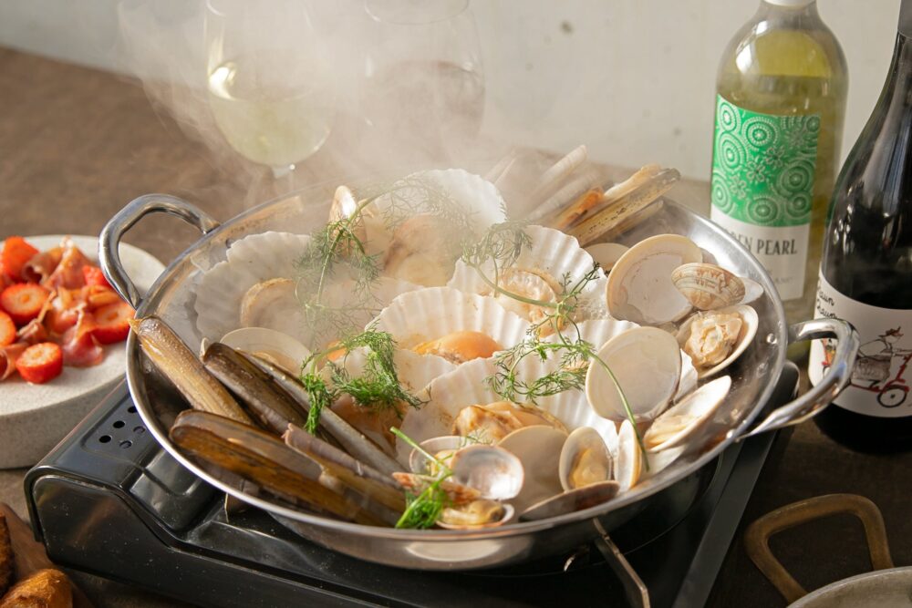 今回登場したのは「貝鍋BBQプラン」。ホタテやハマグリなど、4種の貝が味わえる贅沢な貝尽くし鍋となっています。貝の旨味がたっぷり溶け出したスープで作る〆のリゾットも絶品です。