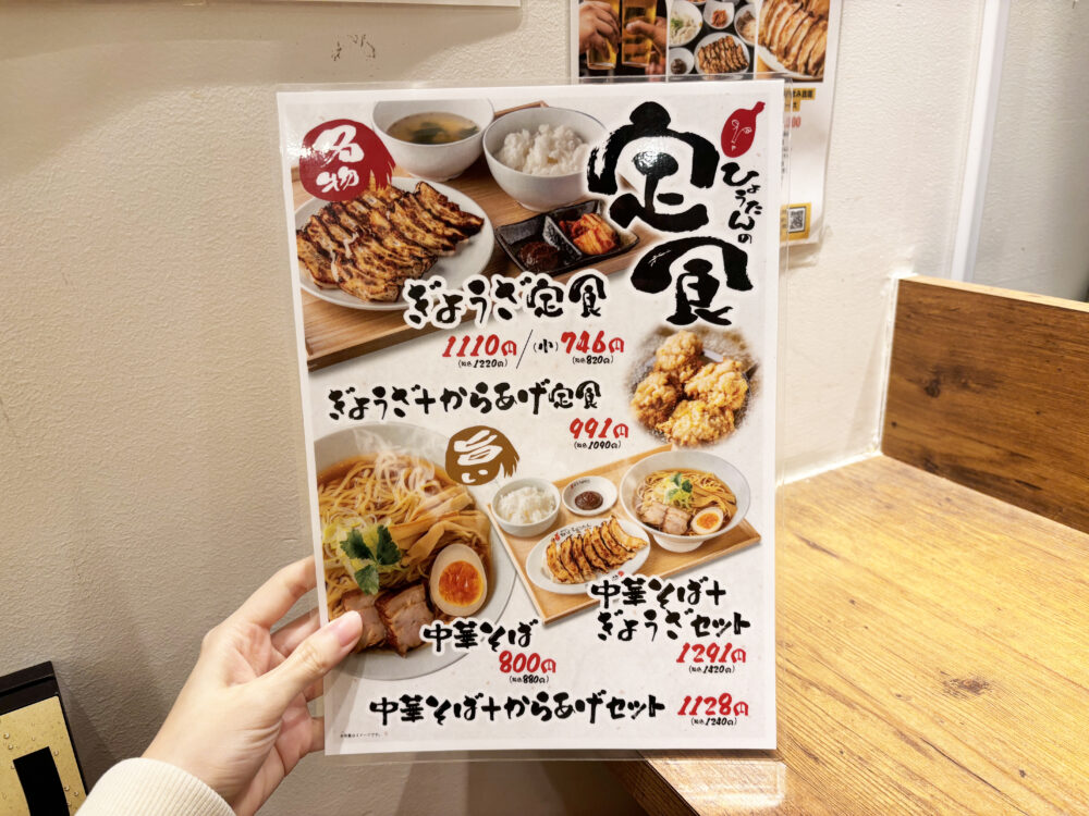 ほかの店舗では、メニューが「ぎょうざ」と「ドリンク」だけのところ、ここでは「定食」のほか、揚げ物やご飯、おつまみ系料理などの単品メニューも楽しめます。
