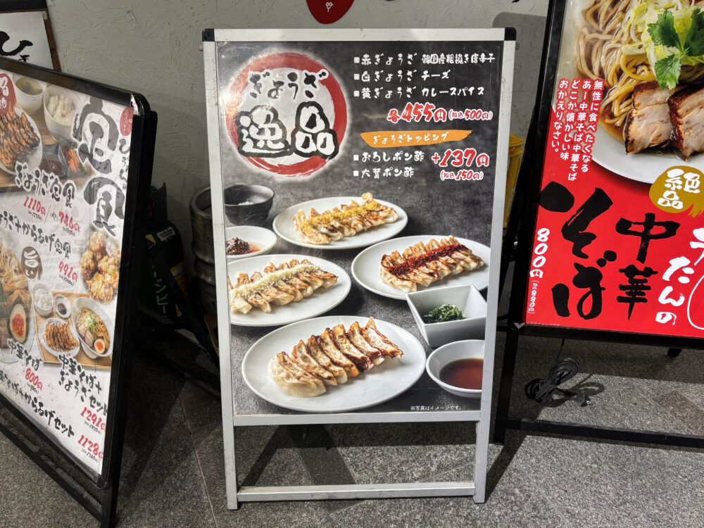 チーズなどでアレンジした「赤・白・黄ぎょうざ」や、「水ぎょうざ」「からあげ」「中華そば」など、気になるものがいっぱい。