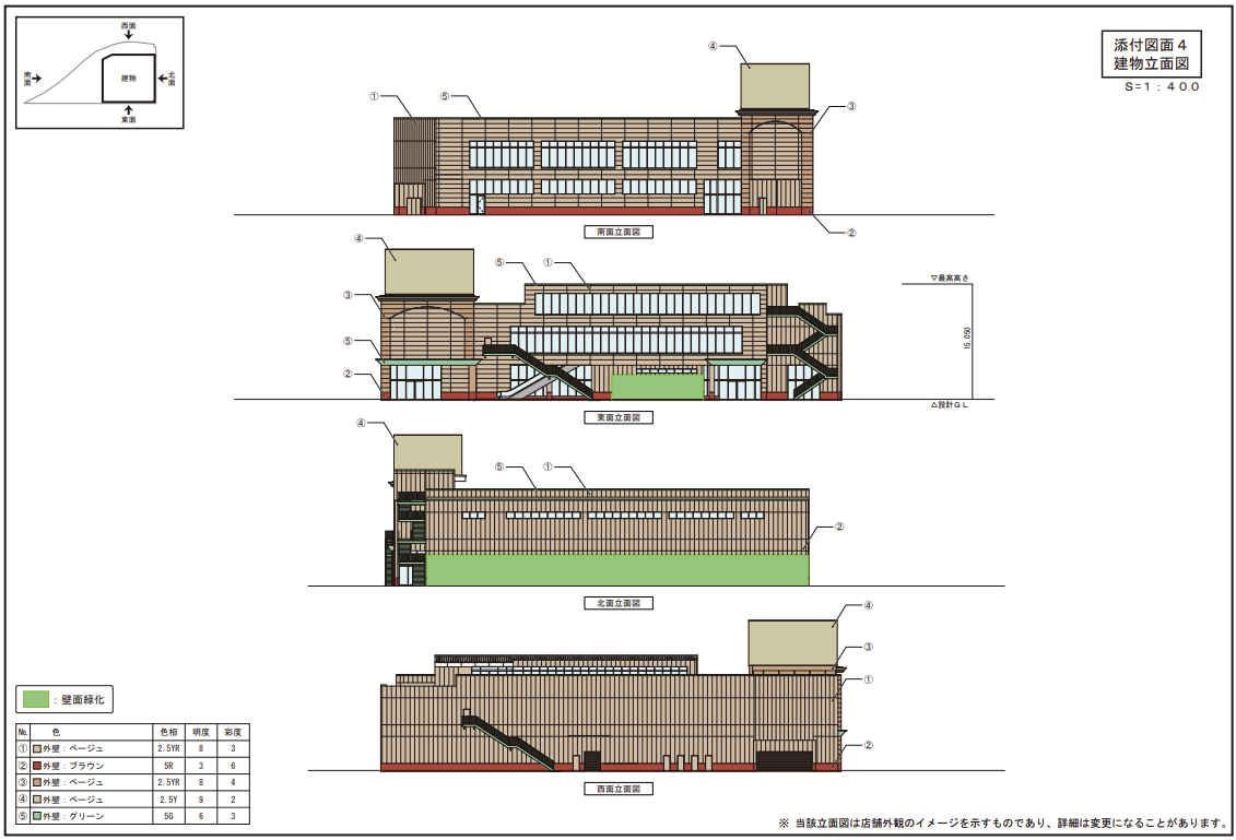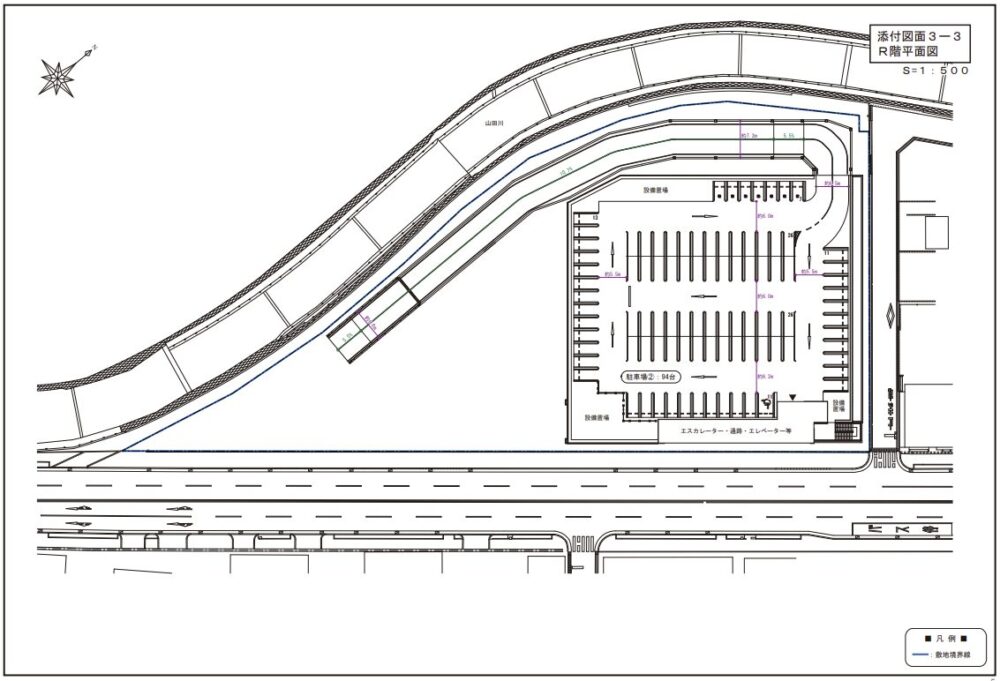 屋上階には全部で94台分の駐車場が設けられます。店舗は「エスカレーター」や「エレベーター」で行き来できるようになるみたいです。