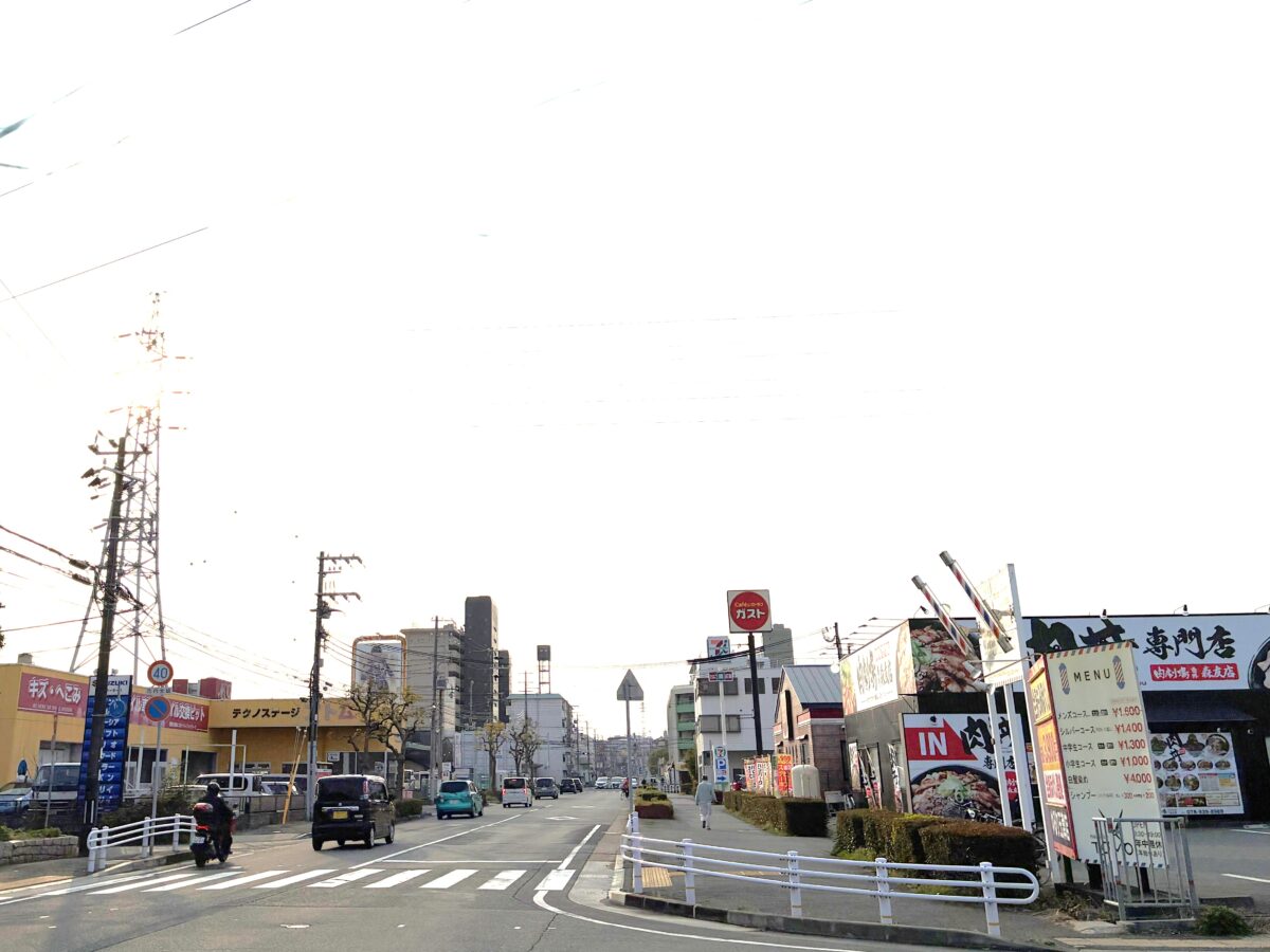 反対を向くとこんな感じ。並びには「ガスト」や「セブンイレブン」があり、さらに進むと枝吉交差点の近くには「ミニストップ」や「塩らーめん専門店 くじら」などもあるあたりです。