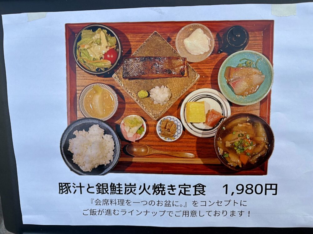 オープンしたのは昨年の12月26日。メニューは「豚汁と銀鮭炭火焼き定食」1種類とのこと。
