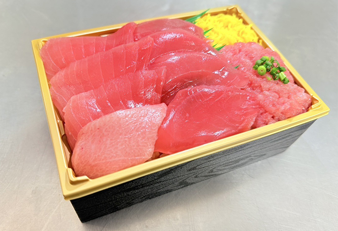 上品な脂がのった対馬産 本マグロの赤身、中トロ、大トロを贅沢に味わえるお弁当です。