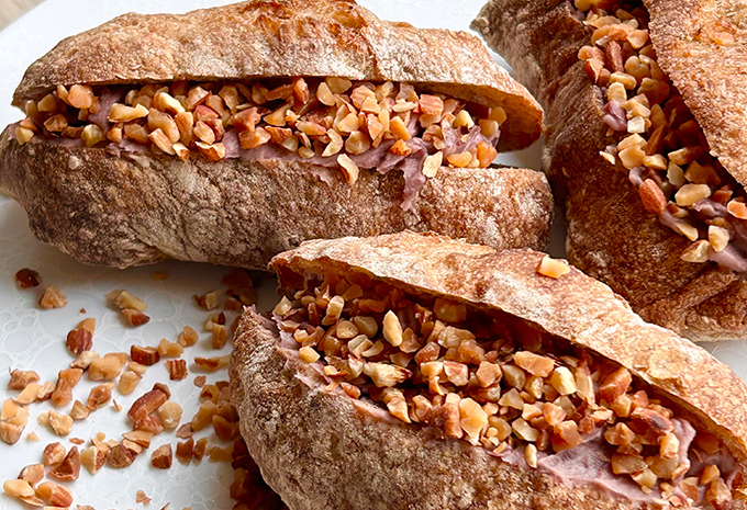 ハード系のパンに黒餡とマスカルポーネとのブレンド餡を融合しました。
