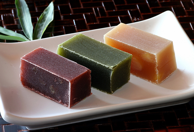 表面が砂糖で白くかたくなり、中はやわらかい、昔ながらの小城羊羹です。