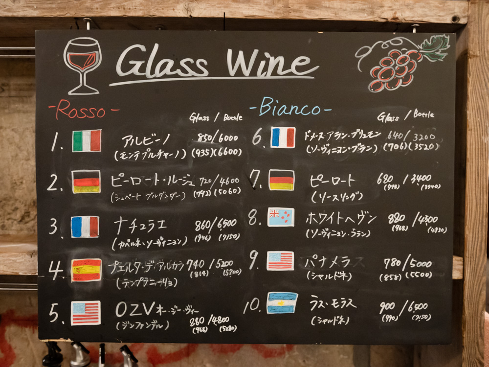 そして、ランチタイム限定で「店内黒板のグラスワインが、全品どれでも528円」とお得!訪れた日はイタリアやフランスなどのワインが、赤・白それぞれ5種類ずつのラインナップと、充実しています。