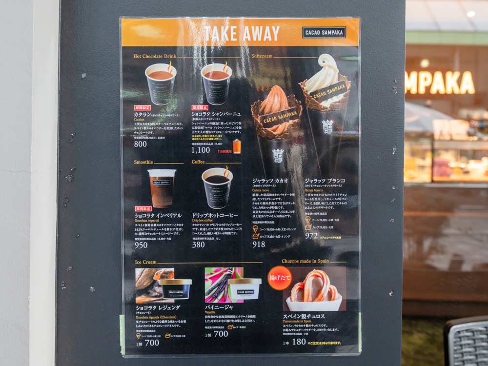 テイクアウトメニューでは、期間限定のホットチョコレートドリンクが気になるところ。上質なチョコレートを使用した「カラタン(800円)」や、お酒入りで大人の香りの「ショコラタ シャンパーニュ(1,100円)」と、寒い季節にぴったりのドリンクですね。