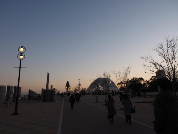 点灯式の直前。少しまだ明るかったですが、ライトアップがなければ、こんな感じになっています。近くで見るとこの大きさはかなりの存在感です。