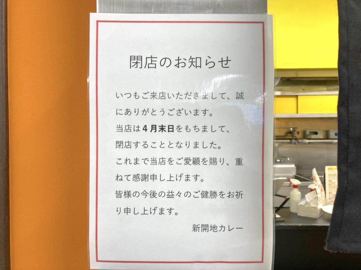 新開地駅のホーム横にあった、立ち食いのカレー店が閉店するようです。