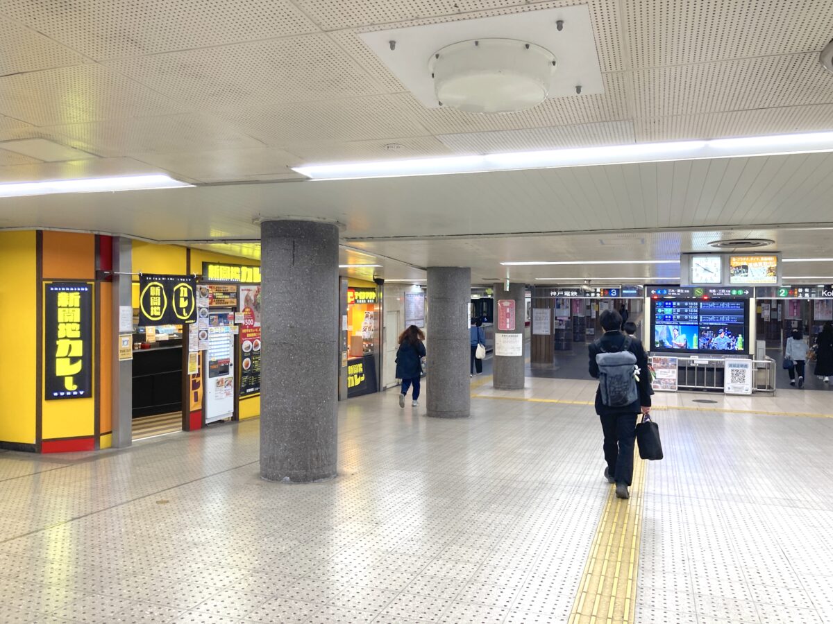 『新開地カレー』は、新開地駅の西口改札を入ってすぐ、神戸電鉄線「3.4番線ホーム」横に2025年12月にオープンしたお店です。