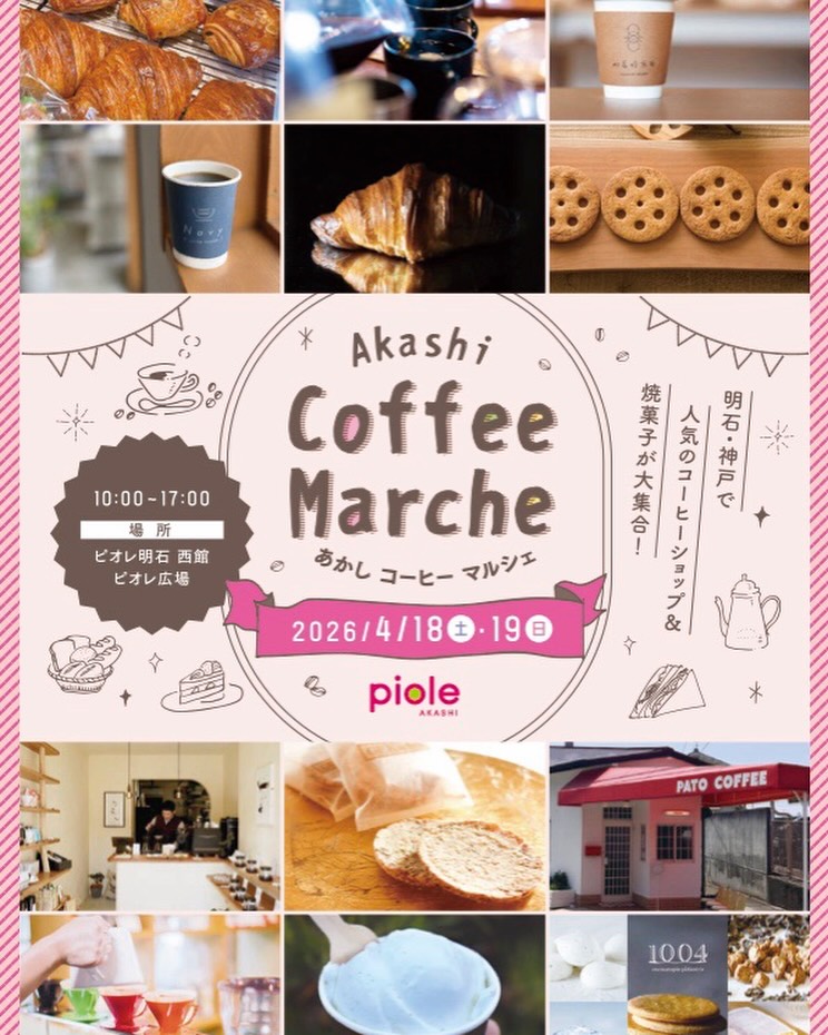 ピオレ明石で、コーヒーの飲み比べと、焼き菓子などのフードが楽しめるイベントが開催されます。