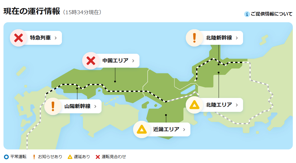 ※特急列車(サンダーバード号・しらさぎ号・きのさき号・まいづる号・はしだて号・こうのとり号・はまかぜ号・スーパーはくと号)にも影響が出る可能性