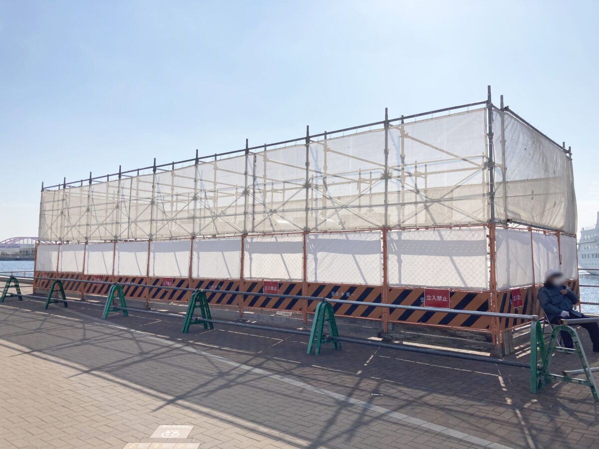人が上に登るなどの影響でところどころ破損していた『BE KOBE』は、2月16日(月)~3月10日(火)の予定で補修工事が行われていました。