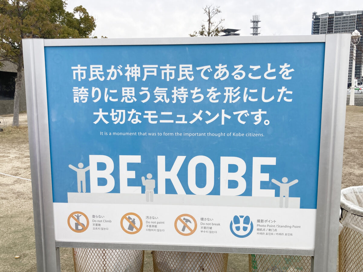 メリケンパークに設置されている『BE KOBE』モニュメントの補修工事が早くも終わってます。