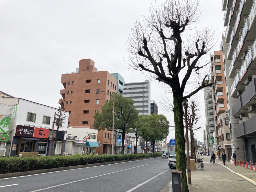 『サムギョプサル アンニョン』ができたのは、新開地駅から北西へ歩いて4~5分の大通り沿い。南へ2つ目の信号が「新開地」の交差点です。