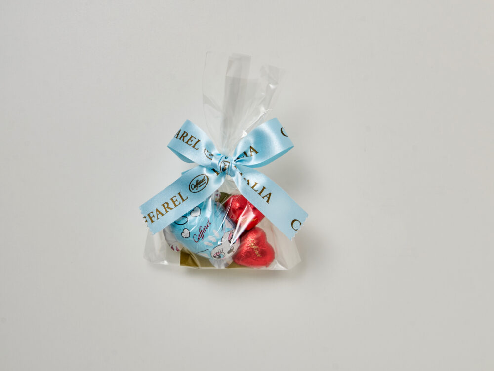 手のひらサイズのキュートなパッケージにはピエモンテやキャット、ミニハートのホイルチョコレート、3粒をアソートしたプチギフトです。