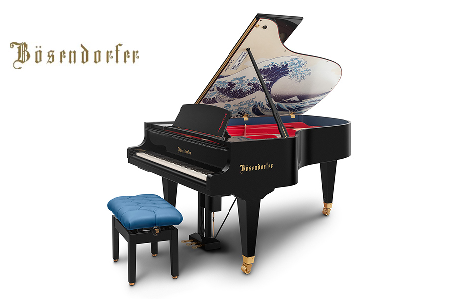 作品の色彩テーマを継承し、ピアノの側板の内側と椅子のクッションにはプルシアンブルーをあしらってるんだとか。