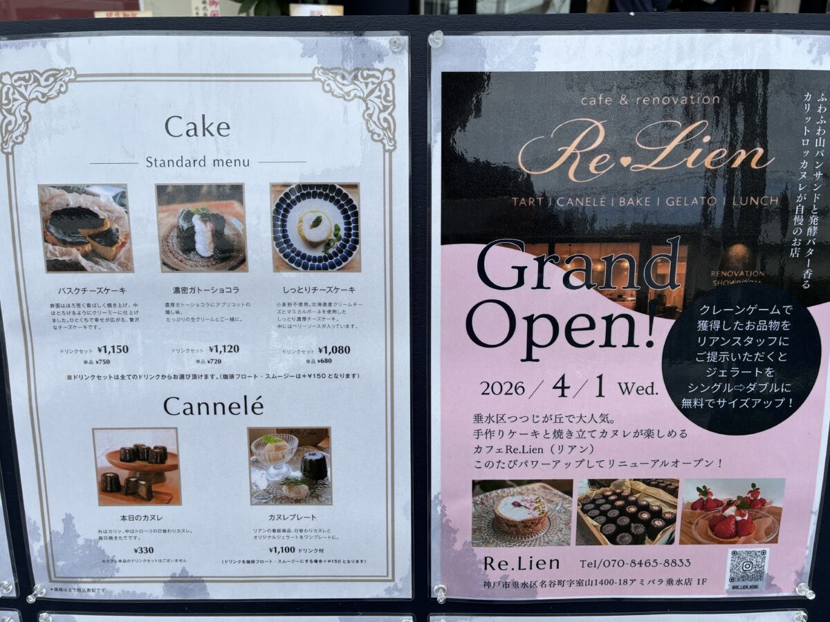垂水インター近くに『リアン』というカフェ・ランチ利用できるお店ができてる。スイーツ・珈琲のテイクアウトもOK