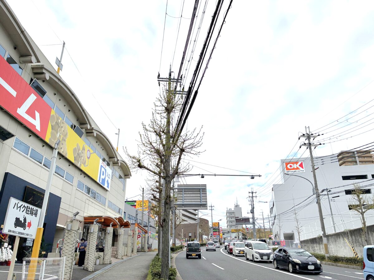 反対を向くとこんな感じ。並びには「イエローハット」や「そば処 小木曽製粉所」があり、向かい側には昨年12月にできた激安スーパー「オーケー」もすぐ近く。