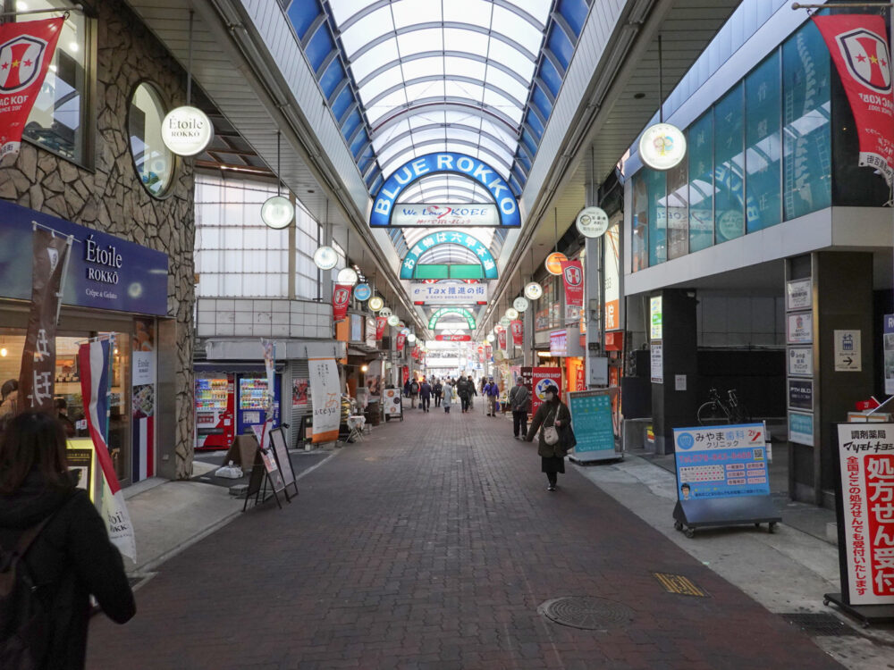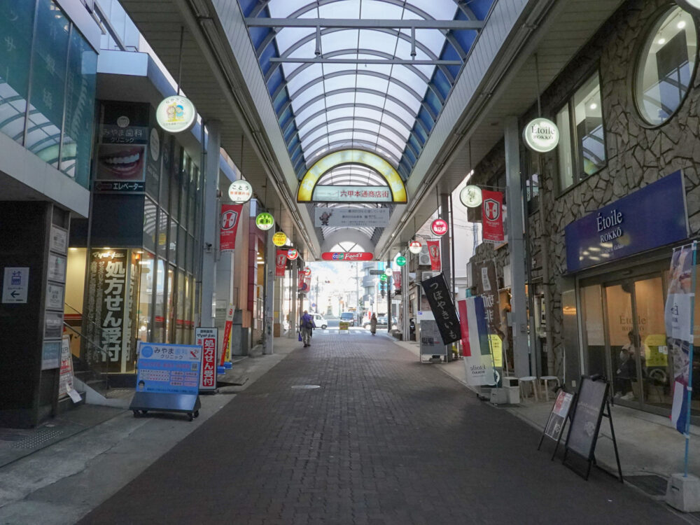 お店ができたのは、六甲本通商店街のなか。海側を向くと、フォレスタ六甲や、JR六甲道駅の方向です。