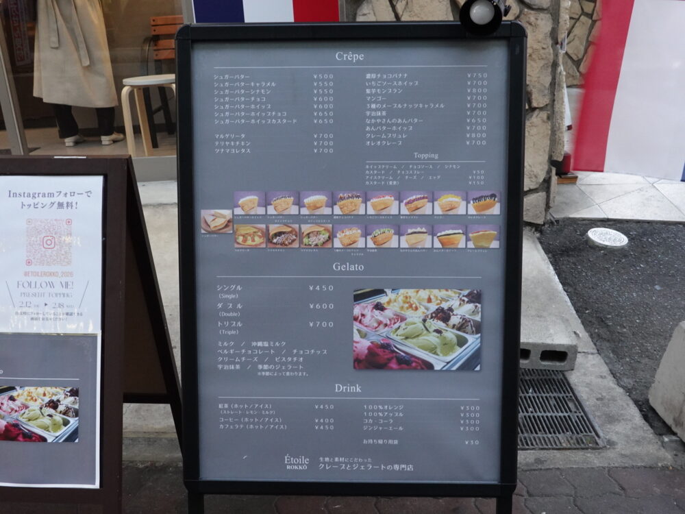 以前は、同じくクレープとジェラートのお店「Belle Rokkō」があったところ。2025年10月ごろにオープンしたお店で、記憶に新しい人も多いんじゃないでしょうか。