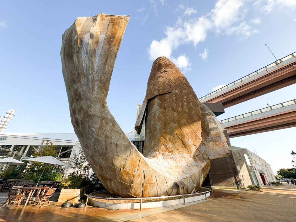 国内では、神戸・メリケンパークにオブジェ「フィッシュダンス」があります。1987年に「神戸開港120年」を記念して誕生したもので、ゲーリーさんが設計、建築家 安藤忠雄さんが監修を担当しました。
