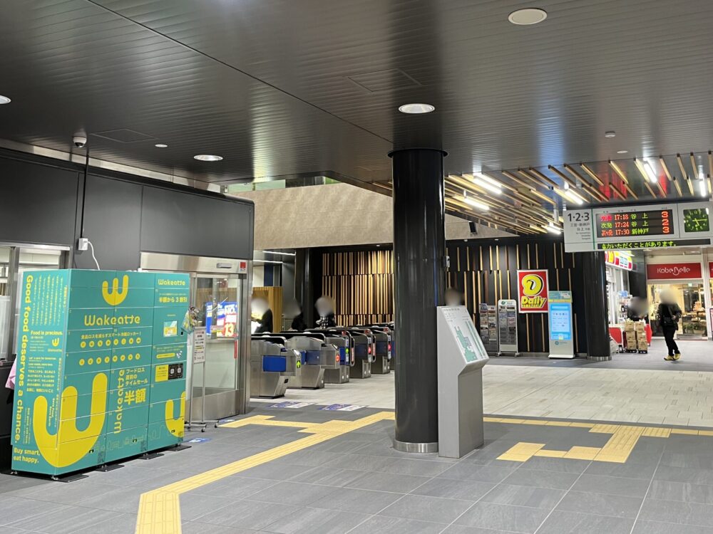 改札口をはさんで向こう側には「デイリーヤマザキ」や「神戸ベル」のお店が見えてます。