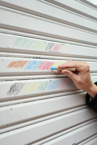 モトコーのシャッターにお絵描きができます。好きな色を使って塗りつぶすだけ!