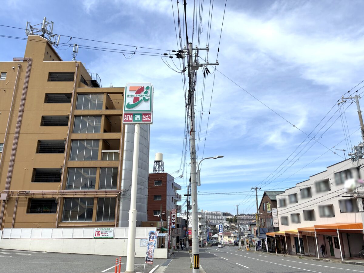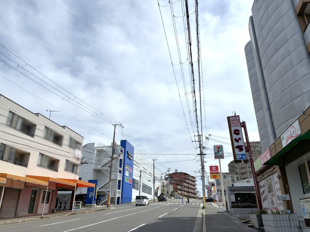 道路を挟んだ向かい側には「セブン-イレブン 明石朝霧店」や「こいち」という居酒屋さん、少し進むとドラッグストア「キリン堂」があります。