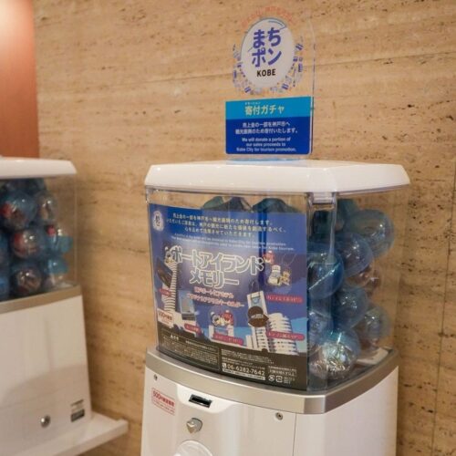 館内に、神戸観光の振興を役立てる寄付ができるガチャを設置。開業45周年を記念したオリジナルのキーホルダー5種も登場します。