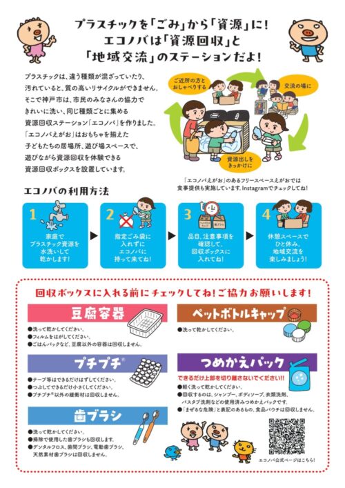 『エコノバ』は、プラスチックを資源として回収し「まわり続けるリサイクル」を実践するとともに、誰もが関わるごみ出しをきっかけに地域交流が生むことを目的としたコミュニティ拠点です。