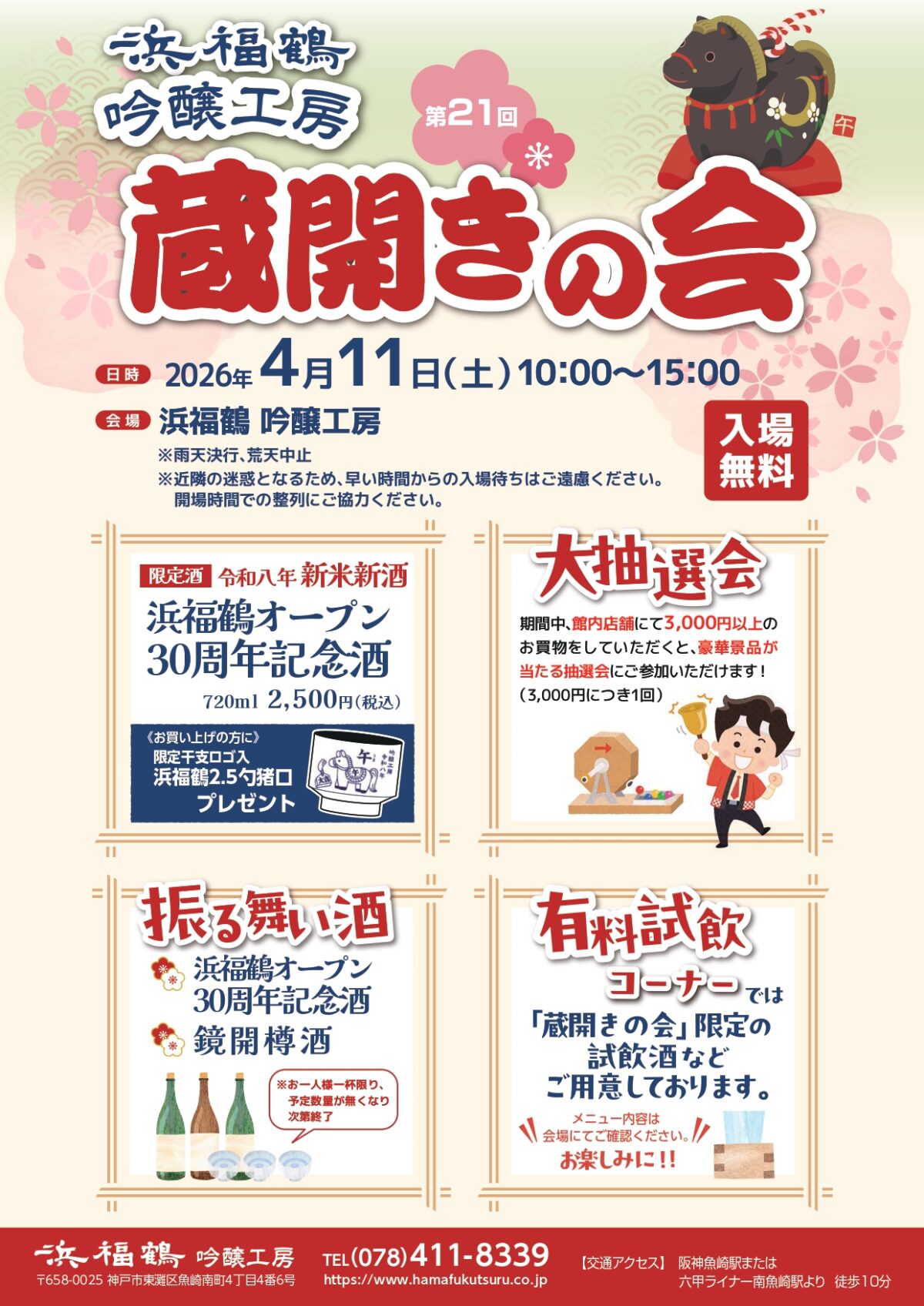 浜福鶴オープン30周年記念酒や鏡開き樽酒の「振る舞い」も行われます。