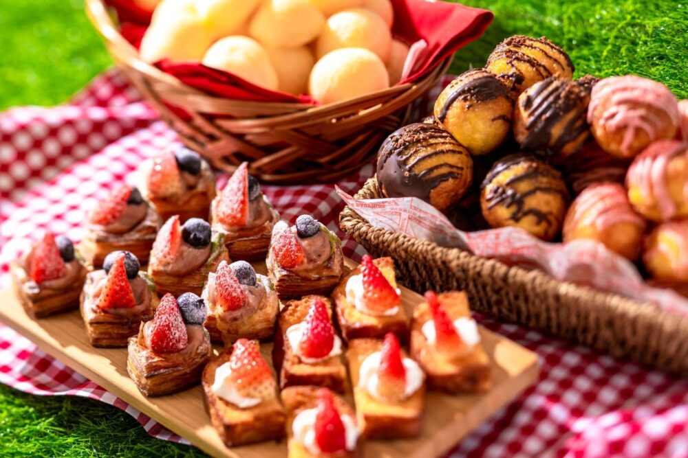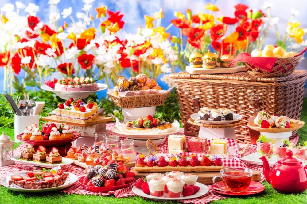 お口直しのセイボリーには、ミニバーガーやカスクート、厚焼き玉子を挟んだサンドイッチなど、ピクニックをイメージしたメニューがラインナップ。例年人気の「国産いちご3種類食べ放題」も実施されるようです。