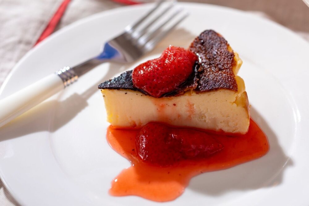 ホテルスタッフの中にもファンが多い「バスクチーズケーキ」は、ポートピアホテルのシェフパティシエ 芳養の一押しメニューだそう。ミルキー感が強いスペイン産クリームチーズを使用し、香ばしさと優しいコクが調和するまろやかな味わいに仕上げられています。