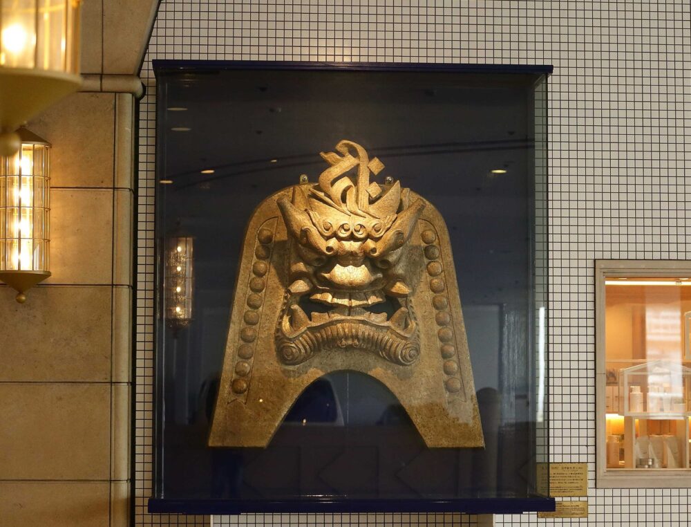 もう一つは、「鬼瓦」。旧「オリエンタルホテル」が京町25番地に移転した際に設置されたものです。