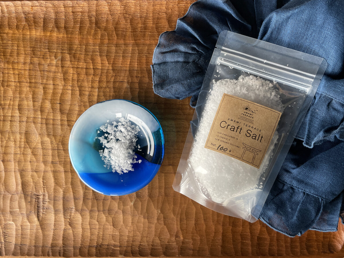 AMAMI TERRACEの店舗内では、塩を炊いて味わいを感じることができる、『AMAMI TERRACE Craft Salt』の実演販売も。1日4時間程度じっくり炊き上げ、大粒の塩に仕上げています。