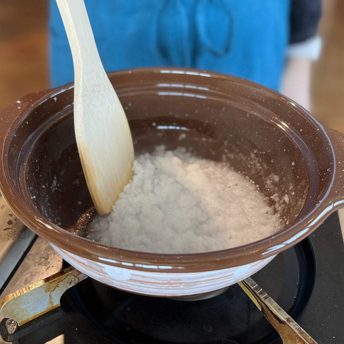 グループで赤穂の海水(かん水)を煮詰め、塩を結晶させます。出来上がった赤穂の塩は、参加者で分けてお持ち帰りできるんだそう。