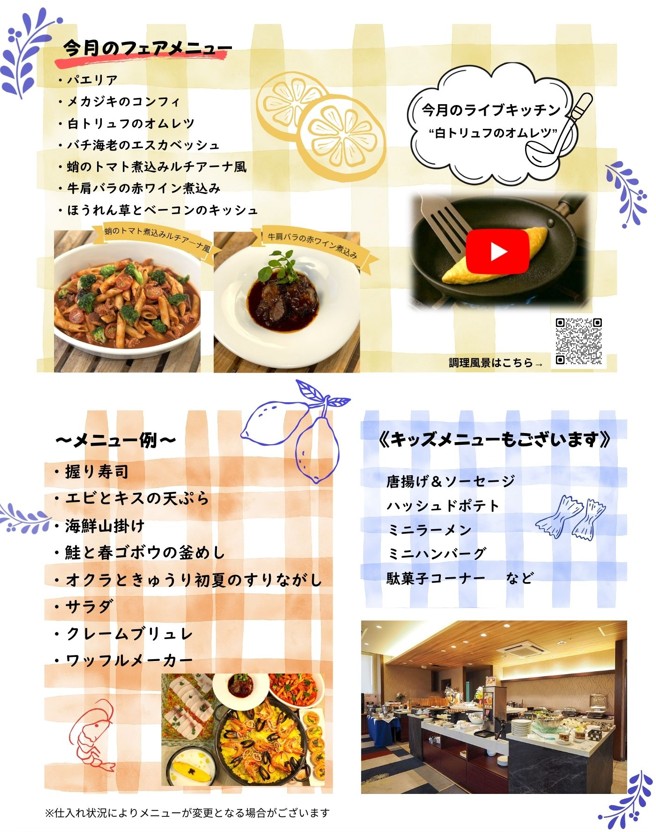 昨年11月に、館内レストラン「シャトーメール」がリニューアルオープンし、ランチがビュッフェスタイルになりました。