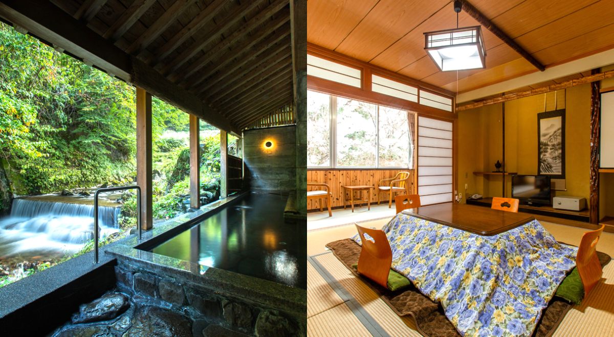 ハチ北高原スキー場リフト目の前の好立地にある旅館です。地産地消にこだわり、但馬の誇る松葉がにや但馬牛を使った、旬の食材を活かした田舎料理が自慢なんだそう。山峡のいで湯「ハチ北温泉 登龍泉」(ラジウム温泉)があり、冬には幻想的な雪見露天風呂を楽しめるみたい。