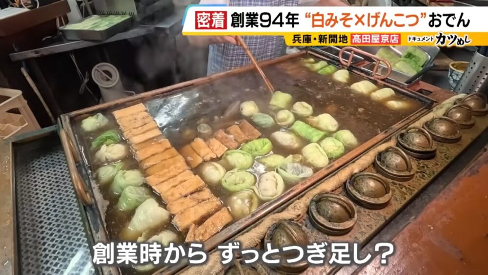前日のものに毎日新たな「だし」を継ぎ足し続けていて、今のものは阪神・淡路大震災後から30年以上続くものだといいます。