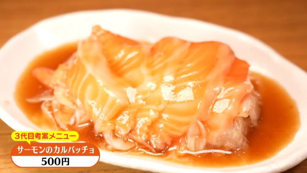 おでんだけでなく、マグロと鶏を串で焼いた「ねぎま」や、3代目が考案した「サーモンのカルパッチョ」など一品料理も充実しているみたい。お酒も進みそうですね。
