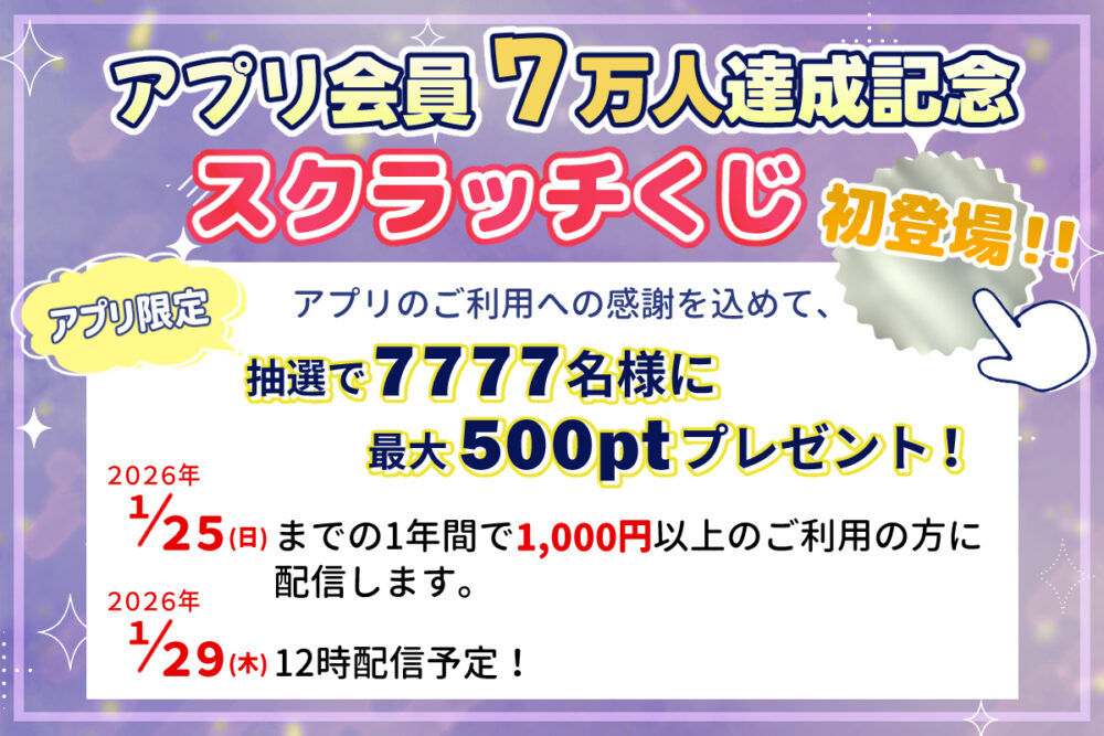 アプリ内の抽選ページから、スクラッチくじに挑戦。抽選でポイントが当たります。