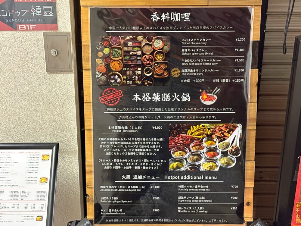 南京町の東側に『神戸南京町 麻辣朋友!(マーラーポンユウ)』っていうスパイスカレーと火鍋の専門店ができてます。
