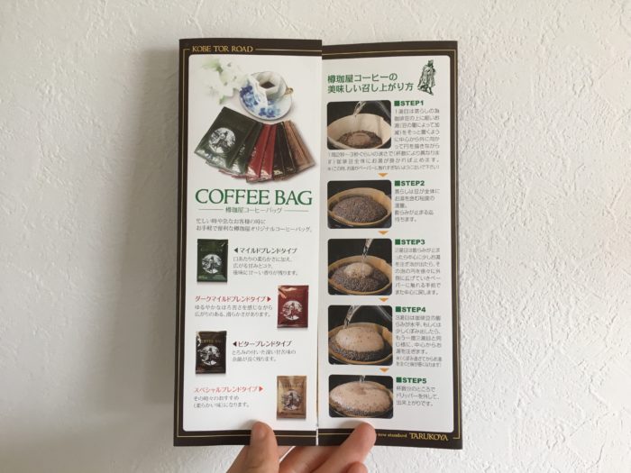 豆を購入した時にもらったパンフレットの中にもお店と同じメニュー表やチャート表、他にも美味しい珈琲の淹れ方も書いてくれています。